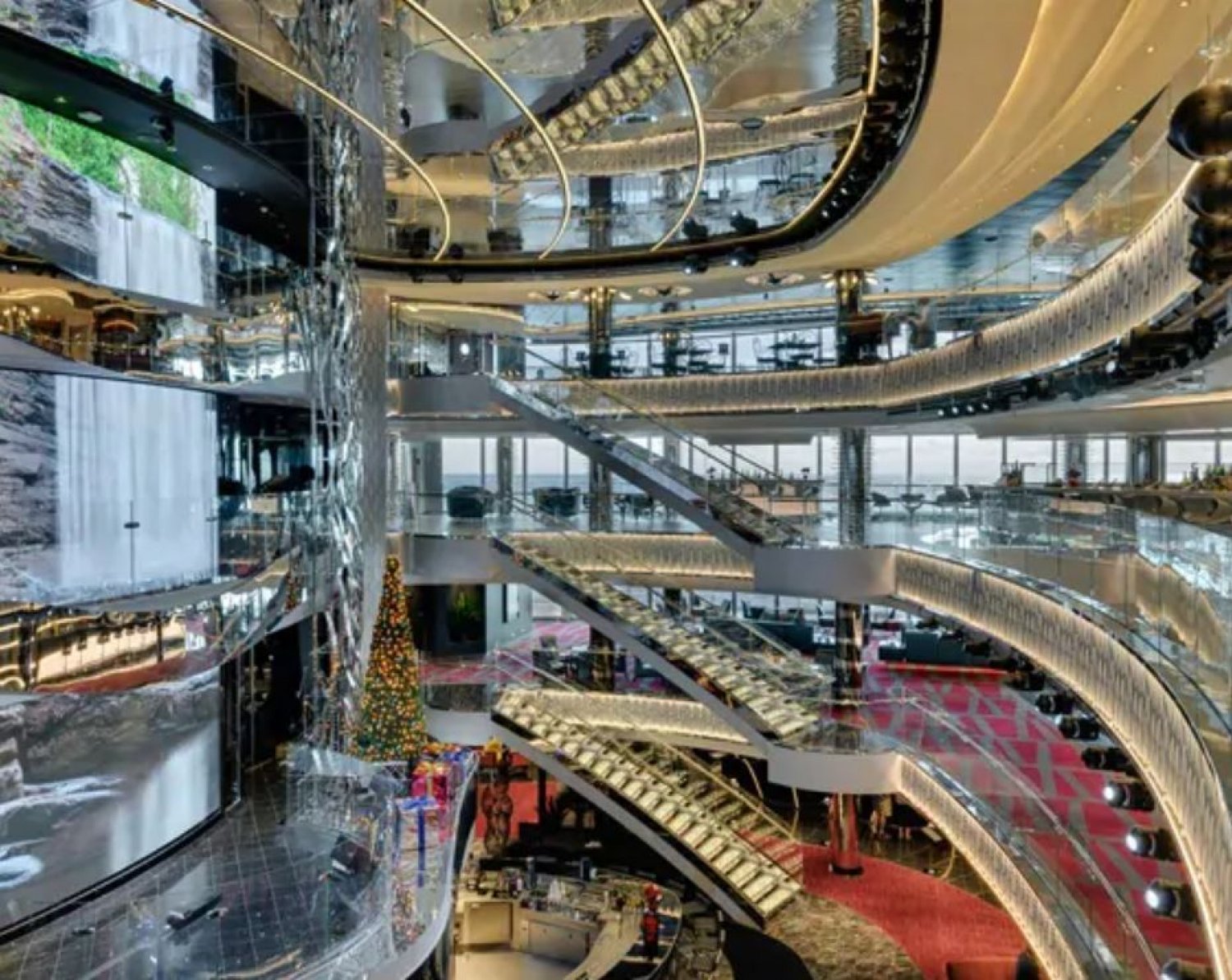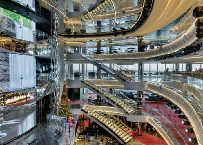 O MSC Grandiosa impressiona pelo seu tamanho e também pelas atrações: são cinco piscinas, 11 restaurantes, 21 bares e lounges, nove hidromassagens, amplo teatro, discoteca e muito mais!