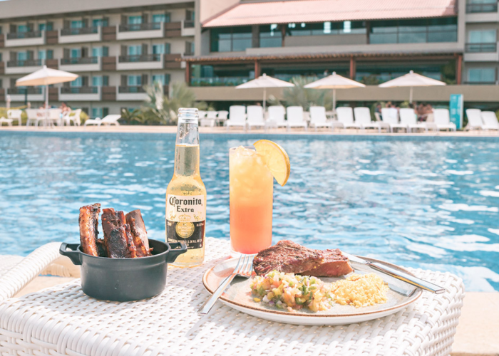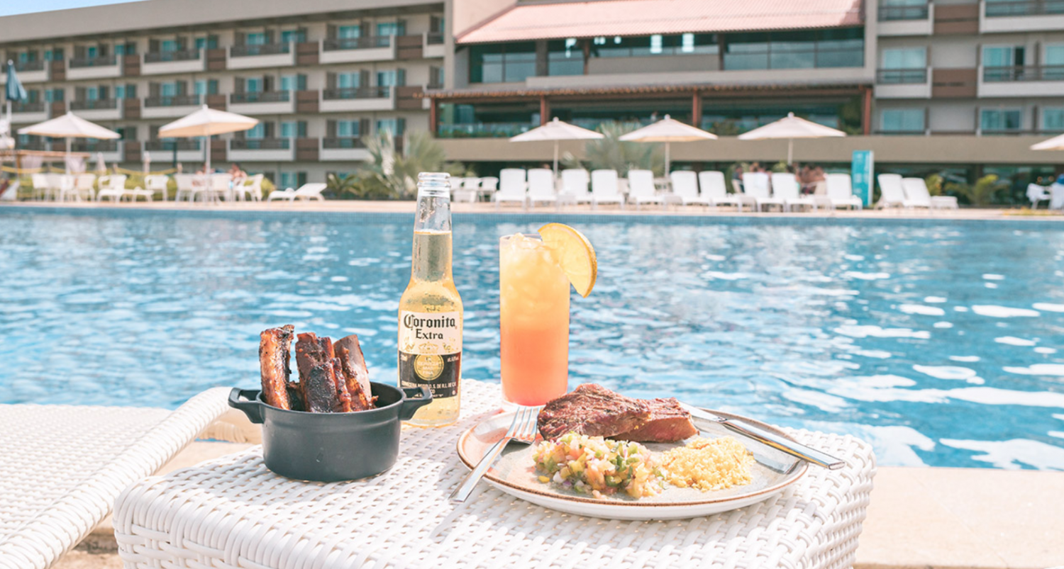 O resort conta com uma estrutura de lazer com duas quadras poliesportivas, salão de jogos, academia, sauna e mais de 2.500 m² de piscinas para você curtir o sol de Japaratinga com toda tranquilidade que você merece. São bares e restaurantes funcionando no sistema all inclusive premium, oferecendo muito sabor e diversidade, com pontos de consumo à disposição 24h por dia, 7 dias por semana.