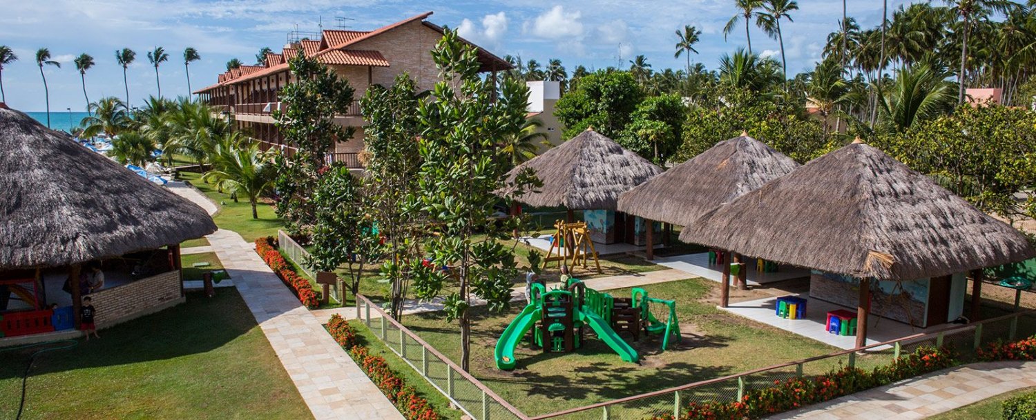 O resort oferece uma estrutura de lazer com quadra de vôlei, salões de jogos, piscinas, além de um kids club completo com uma programação perfeita para a criançada, das 8h às 22h.